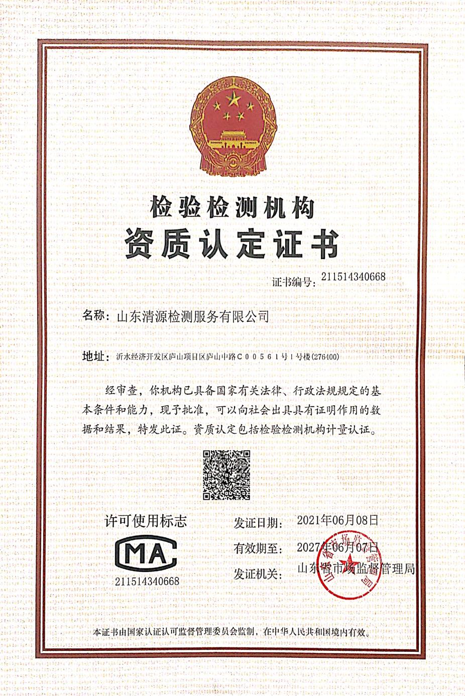 6月8日,山东清源检测服务有限公司(以下简称“清源检测”)正式获得国家CMA检验检测机构资质认定证书,自此可以向全社会出具车用柴油、轻质白油、工业白油、3#喷气燃料油等第三方检验检测报告。此次顺利通过CMA资质认定,是对清源检测技术、能力、水平等方面的充分肯定,为公司全面开展各项检验检测工作提供了强有力的支撑。